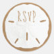 Sand dollar rsvp envelope seal. Round sticker with brown beach sand and white sand dollar. The RSVP text can be changed or deleted.