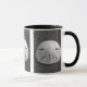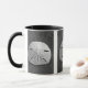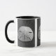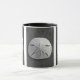 A sand dollar seashell rests on the sand beach coastline with gentle side lighting from the sunset. Image is a black and white photo taken at Playa Grande, Costa Rica on the Pacific Coast. Personalize this sea shell necklace mug or cup with your own text or images using the customize it option to make a special seashell gift!