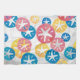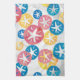 Trendy Sand Dollar Seamless Pattern in Yellow, Red, and Blue features our original design of various size and colors of overlapping sand dollars in a flat graphic style with our signature texture on a textured white background.