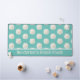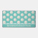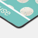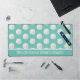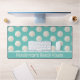 Beach themed desk mat done in robin's egg blue, with a pattern of sand dollars. A text area, across the bottom, has custom white text ready to personalize. Perfect for your beach cottage or beach based business.