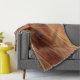 A quality printed throw has its advantages. This is a much finer weave throw than its loopier cousins, and though lighter, it is worth the investment for custom room accessorizing. The back is much prettier than the typical brown, and the fringe on the long sides very vivid, the selvage nicely done. Before photographing, I washed the throw in cold water, delicate, with a thicker woven throw the same size. On tumble dry low, this throw was dry in half the time as the other. This is a very practical quality if you use throws for furniture covers or to wrap up in frequently. The sleekness of the fabric makes it a great layer for accenting or protecting without the feeling of sitting on too much stuff. Perfect for napping or when you feel a light chill coming on. The color printing is beautiful and on this fabric, matched the design and color of my Photoshop image. This is an advantage for blending room fabrics and colors. The fringe on the short sides prints the colors from the design image and therefore varies from the side fringe. I streaked a white fractal line through the plaid pattern to give the illusion of weaving. This printed as crisp as an illusory thread, and put some white in the short side fringe, showing another advantage of print vs loomed- for artistic purposes, line lines, detail, and color integrity can be planned and preserved. My loomed throws have color limitations and more of a needlepoint texture. Print throws reproduce an exact image. The throw felt a little stiff straight out of the package, but this went away in the first delicate wash. Of course I searched the wash water for ink or bleeding and there was none.