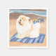 A sweet design for summertime decor and wear. Little chow is getting a tan on the beach with a blissful expression on his face.