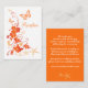 This nautical beach theme inspired wedding enclosure card has bright orange hibiscus type tropical flowers and decorative scrolls on it, along with sand beige butterflies, starfish, a scalloped shell and a seahorse that matches the wedding invitation shown below. It would be perfect for a destination wedding, a beach wedding, or for anyone getting married in the tropics. If you require any matching items in this design, or if you need help customizing it with your info, please email niteowlstudio@gmail.com. ****PLEASE NOTE that everything will print as it appears on your monitor. I will not see your card once you order it and Zazzle will not edit anything.