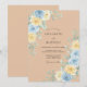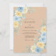 This design features a warm sand-colored backdrop adorned with soft watercolor florals. Delicate pale blue and light yellow roses are nestled among silvery eucalyptus leaves for a serene, natural aesthetic. The palette of dusty azure, buttercream yellow, and earthy beige creates a romantic atmosphere. Lush botanical clusters accentuate the layout, offering a graceful and polished look.