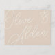 Designed to match our Script Watermark wedding invitations, this elegant typography based RSVP postcard is perfect for traditional mail-in RSVPs. Design features oversized script lettering at the top, in tone on tone shades for a watermark effect. Personalize with your desired RSVP date and custom accept and decline wording in classic serif lettering aligned at the lower right. Our Sand colorway is an elegant mix of earth tone shades, with pale cream and terracotta clay lettering on a soft sandy beige background.