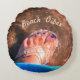 This circular pillow captures that moment when you can't wait to stick your toes in the ocean, even if you still have on sandals. It shows the edge of a woman's sundress, with flip-flops, in the refreshing surf. The text says "Beach Vibes" but customize with the name of your beach house, a favorite phrase, or your last name or initials. Or, delete the text if you don't want it.