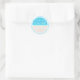 Chic Modern Beach Round Design Return Address Labels / Envelope Seals with Monogram - All text can be customized on these template stickers. Abstract color block sand, sea, and sky design with stylish script typography and simple personalized name & address in a circle and cute monogrammed flip-flops. These labels make an elegant way to introduce friends and family to your new home. Minimalist design with trendy yet timeless coastal inspired stripes is perfect for a new house or cottage near the ocean, lake or beach, whether it be for a permanent residence or a weekend getaway. Sophisticated finishing touch to housewarming party invitations, change of address cards, new address announcements, holiday cards, wedding, bridal shower or graduation thank you notes, or other correspondence.