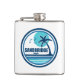 Well made flask, a little better than I had expected. Flask came in clear plastic box which gave it a nice presentation when I took it out of the zazzle packaging. Image is not printed on flask but on sticker. Don't know how this will hold up I haven't used it yet. This would make a Great gift! I plan to purchase more for friends! Cheers. I thought a little brighter than computer. Very crisp, writing wasn't