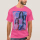 My 11 yo wore adult XL (5’7” 165#). The 8yo is small framed. She wore adult small and tied it in the back. Grandma wore adult large with long sleeve shirt underneath. Tall girl adult medium. Dark haired male adult large. Good quality dark Heather gray, Gildan brand shirt. -it was next up from basic choice and cost about $20 per shirt. Not too thick or thin. Washed and dried well, no major shrinkage. Not see-through. Can wear a bra under it fine. Screen print is just as shown and well done, front and back.