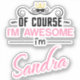 Sandra Of Course I'm Awesome I'm Sandra name in mixed black and pink sans and decorative cursive font lettering with scroll embellishments and topped a golden crown.