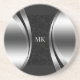 Black damask with metallic silver texture frame and geometric wavy stripes. Custom monogram.