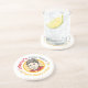 A sandstone drink coaster with our Johnny's Pizza House logo on it.