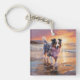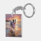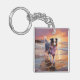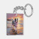 Sandy Australian Shepherd Dog on Beach Sunset Keychain