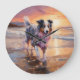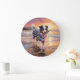 Sandy Australian Shepherd Dog on Beach Sunset Large Clock