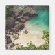 Sandy Beach Cove with Green Trees, Rocks & Ocean Magnet