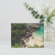 Sandy Beach Cove with Green Trees, Rocks & Ocean Postcard