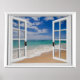Relaxing beach and Ocean view, fake window scene, for a windowless office wall. Fun, realistic optical illusion scenic poster for an office or study wall.