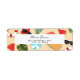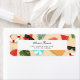 A fun & creative seasonal Summer address return label featuring an illustrative pattern on sandy beach with watermelon, beach towels, umbrellas, tropical leaves, beach balls, sunglasses, and floaters.