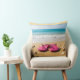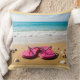 sandy beach with pink flip flops pillow.