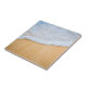 Ceramic tile with a photograph of a golden brown sandy beach with white foamy surf.
