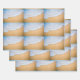 Wrapping paper sheets with a photograph of a golden brown sandy beach with white foamy surf.