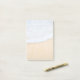 Sticky notes with a photograph of a golden brown sandy beach with white foamy surf. Semi-transparent layer placed over top to give it a faded look.