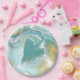 Sandy Brown Ocean Blue Marble Fluid Art Paper Plates