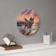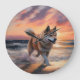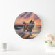 Sandy Paws Akita Dog on Beach Sunset Large Clock