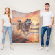 Sandy Paws Alaskan Malamute Dog on Beach Sunset Fleece Blanket