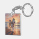 Sandy Paws Alaskan Malamute Dog on Beach Sunset Keychain