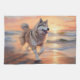Sandy Paws Alaskan Malamute Dog on Beach Sunset Kitchen Towel