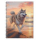 Sandy Paws Alaskan Malamute Dog on Beach Sunset Notebook