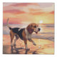 Sandy Paws Beagle Dog on Beach Sunset Faux Canvas Print