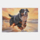 Sandy Paws Bernese Mountain Dog on Beach Sunset Kitchen Towel