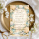 A refined coastal wedding design featuring an elegant oval wreath of seashells, oyster shells, starfish, and soft sea glass accents. Neutral sandy tones blend with muted ocean blues and delicate dune grasses to create a serene seaside aesthetic. The warm parchment background enhances the natural textures while maintaining a timeless, elevated feel. Perfect for a romantic beach celebration with classic coastal charm.