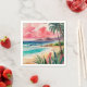 A peaceful tropical shoreline where golden sand meets rolling turquoise waves. Lush palm trees sway under a dreamy pink and teal sunset. The perfect escape for those who love the beach and ocean breeze.