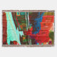 A quality printed throw has its advantages. This is a much finer weave throw than its loopier cousins, and though lighter, it is worth the investment for custom room accessorizing. The back is much prettier than the typical brown, and the fringe on the long sides very vivid, the selvage nicely done. Before photographing, I washed the throw in cold water, delicate, with a thicker woven throw the same size. On tumble dry low, this throw was dry in half the time as the other. This is a very practical quality if you use throws for furniture covers or to wrap up in frequently. The sleekness of the fabric makes it a great layer for accenting or protecting without the feeling of sitting on too much stuff. Perfect for napping or when you feel a light chill coming on. The color printing is beautiful and on this fabric, matched the design and color of my Photoshop image. This is an advantage for blending room fabrics and colors. The fringe on the short sides prints the colors from the design image and therefore varies from the side fringe. I streaked a white fractal line through the plaid pattern to give the illusion of weaving. This printed as crisp as an illusory thread, and put some white in the short side fringe, showing another advantage of print vs loomed- for artistic purposes, line lines, detail, and color integrity can be planned and preserved. My loomed throws have color limitations and more of a needlepoint texture. Print throws reproduce an exact image. The throw felt a little stiff straight out of the package, but this went away in the first delicate wash. Of course I searched the wash water for ink or bleeding and there was none.