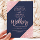 Sangria glitter typography navy blue wedding invitation