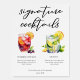 This chic signature cocktails menu foam board sign features custom black typography above 2 drinks and their ingredients for your wedding bar. A cute summer Sangria and Mojito drawing add a cool flair to your bar menu. Complete with the couple's names and date for their reception.