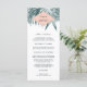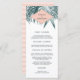 Tropical chic wedding menu features your starter courses, entrees and desserts in elegant off-black lettering, accented with vintage style palm frond illustrations in rich jasper green, and your names or text of choice displayed on a summery peach geometric element. Designed to coordinate with our Sanibel wedding collection for elegant beach weddings.