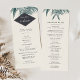 Our vintage tropical wedding program features your ceremony details in modern off-black lettering, accented with vintage etched style green palm frond illustrations, and your names displayed on a charcoal gray geometric element. Reverse side lists the members of your wedding party with easily editable text fields. Coordinates with our Sanibel wedding invitation collection for elegant vintage beach weddings. Use the template fields to add your ceremony and bridal party information, and then click "Customize It" to reposition elements if needed. Need help? Contact me via the "Ask this Designer" link on this page.