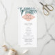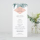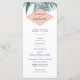Our tropical botanical wedding program features your ceremony details in modern off-black lettering, accented with vintage etched style green palm frond illustrations, and your names displayed on a summery peach geometric element. Reverse side lists the members of your wedding party with easily editable text fields. Coordinates with our Sanibel wedding invitation collection for elegant beach weddings. Use the template fields to add your ceremony and bridal party information, and then click "Customize It" to reposition elements if needed. Need help? Contact me via the "Ask this Designer" link on this page.