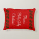 Cute holiday accent pillow showing Santa Claus in front of a Christmas tree that is decorated with many fun and unique ornaments. Reverse side of pillow is bright red and has some holly and a message that reads "Have a Holly Jolly Christmas!" An original artwork by Angela Hoard-Dunn.