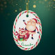 On this cute ornament, Santa waves hello while a little red fox holds the gift he has just received. Below the image is your special child's name in green. The image is framed with a pretty red, green, and white candy cane stripe pattern. The back of the ornament has the same striped frame, and more text fields for you to customize. Perfect for grandparents or parents to give to a little one.