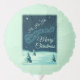 Ho-Ho-Ho Merry Christmas balloon with a vintage illustration of Santa in his sleigh being pulled by his reindeers. Little stars sprinkle the night sky. Snow covered pine trees on the ground. Vintage retro feel.