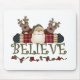Santa Claus and his reindeer adorn these cute holiday greeting cards, mugs, tote bags, T-shirts, and other items and text reads "Believe"! You can customize these Santa and Reindeer holiday items using the easy customization tool.