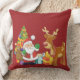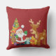 Santa and Reindeer by Christmas Tree with Presents Throw Pillow