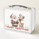 Santa and Reindeer in Festive Cartoon Style Metal Lunch Box