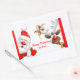A whimsical Christmas sticker with cartoon Santa Claus and his reindeer coming in from the sides of the red border. Coordinating pieces available in store.