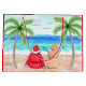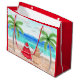 A Watercolor Santa Claus sitting on a beach with a snowman made of sand. This Gift bag is cute for your snowbird friend or anyone living in a warm state or country.